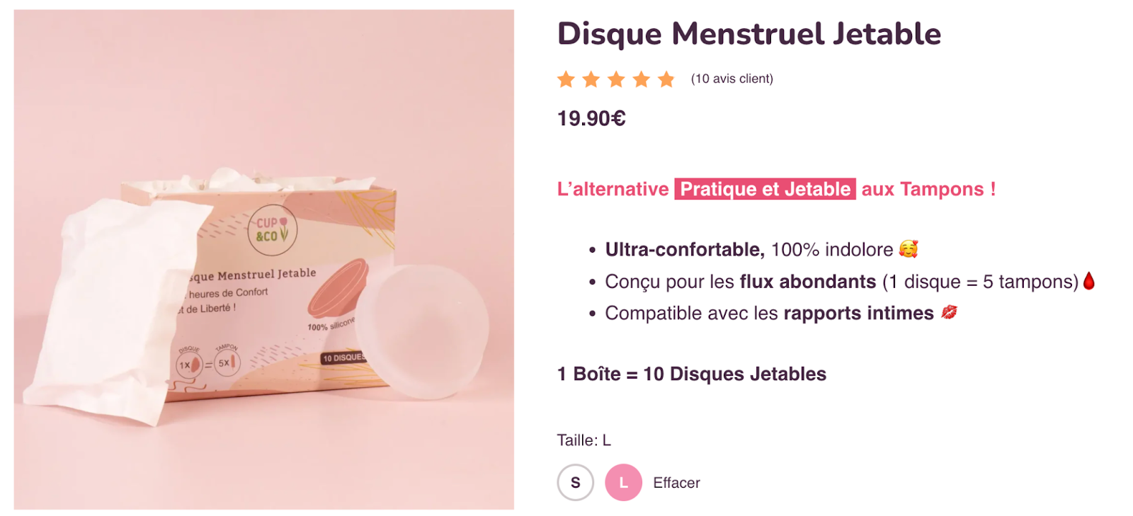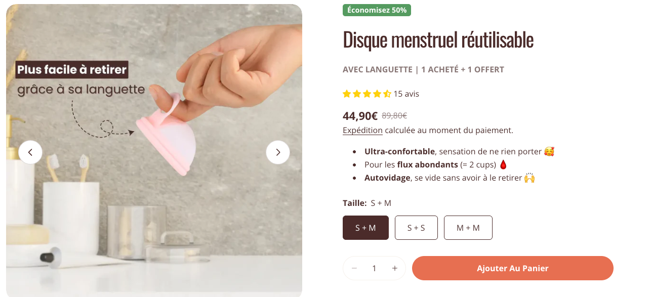 En revanche, la marque offre un avantage intéressant : 2 disques jetables sont inclus gratuitement à l’achat d’un pack Regular + Regular, Small + Small ou Regular + Small. Cela vous permet de tester d’abord les disques jetables pour vous familiariser avec le produit avant de passer aux modèles réutilisables.